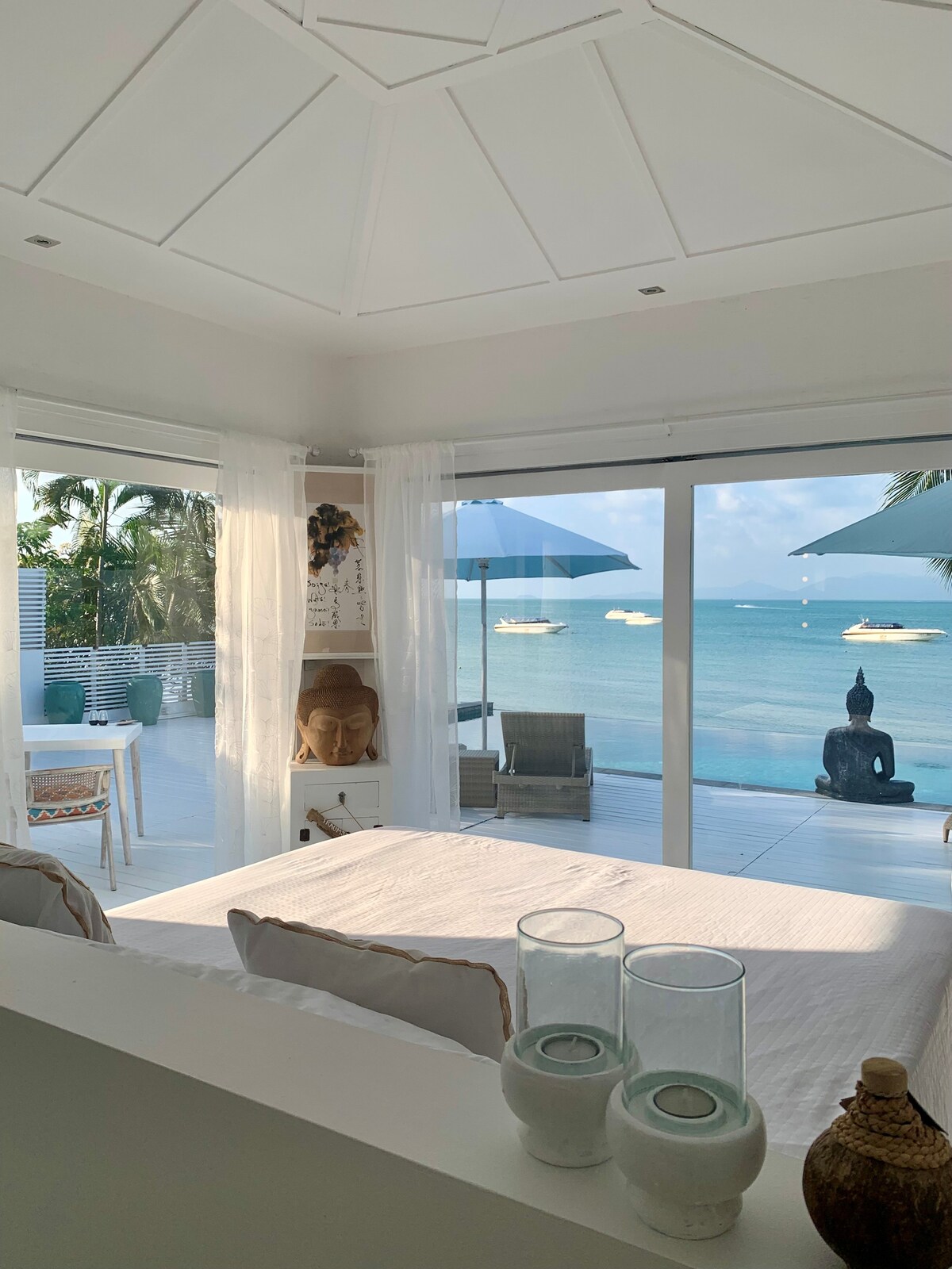 Villa Callisto es una propiedad frente al mar de diseño contemporáneo, ubicada en la península de Plai Laem con vistas a la bahía de Tongson en el extremo norte de Koh Samui. Junto a hoteles de 5 estrellas como Six Senses Hideaway, Melati Beach Resort en Tongson Bay y The Ritz Carlton, ofrece dos playas de arena prístina y restaurantes a pocos pasos. Orientada al este, esta ubicación única cuenta con uno de los mejores amaneceres de Koh Samui para disfrutar desde la terraza de tu piscina o mientras te relajas en el jacuzzi.