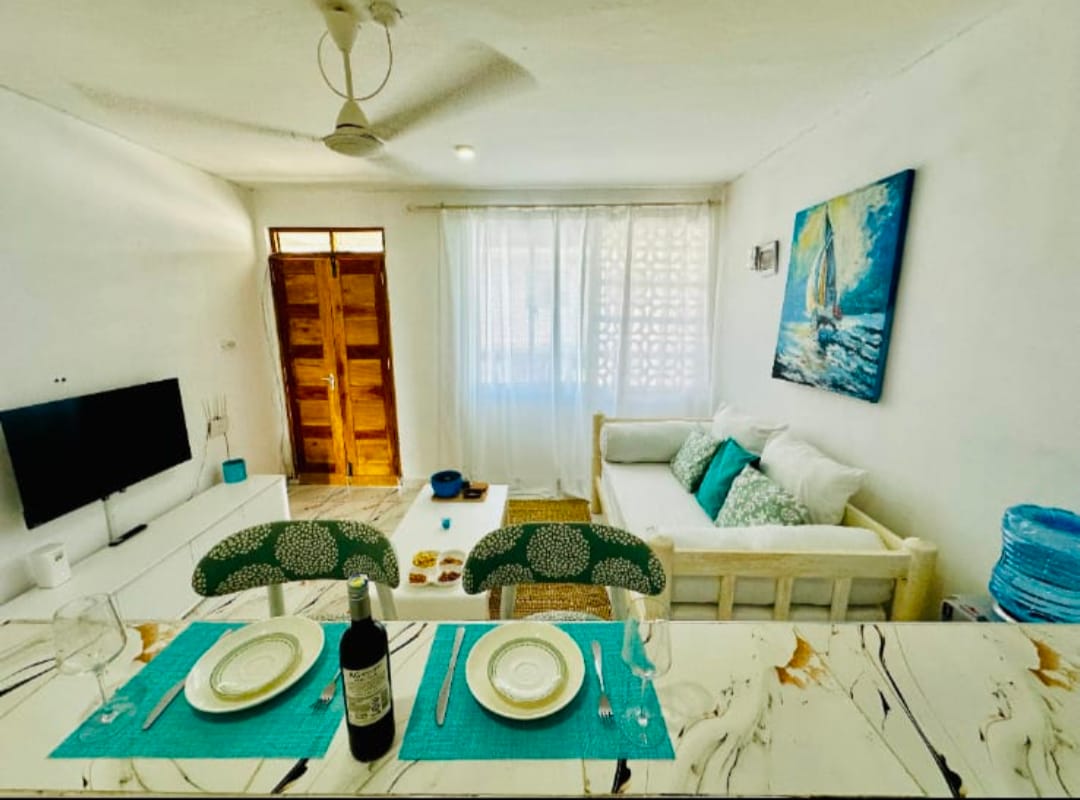 Te damos la bienvenida a Nyota Baharini, una joya brillante junto a la playa. Nuestro acogedor apartamento de planta abierta se encuentra idealmente a lo largo de la costa, ofreciendo un cómodo acceso a las atracciones locales. Diseñado generosamente para la comodidad, este refugio cuenta con una cocina totalmente equipada, una acogedora zona para dormir con una lujosa cama tamaño queen, un baño elegante y un balcón privado que combina la vida interior y exterior para que disfrutes de la refrescante brisa del mar. *construcción en algunas unidades exteriores en curso*
