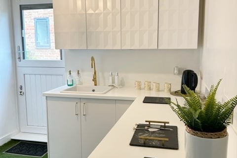 «Bedknobs» es una propiedad independiente y autónoma en nuestro jardín trasero que consta de un dormitorio doble, baño privado con ducha a ras de suelo, cocina y salón/comedor. La propiedad tiene calefacción por suelo radiante, wifi, televisión Sky con películas, reproductor de DVD, nevera/congelador, horno eléctrico, cocina de gas, cafetera y lavadora. Situado en un bonito jardín trasero con acceso a través de su propia entrada. Aparcamiento fuera de la carretera para 1 vehículo. Situado en Waterlooville, con tiendas y comida para llevar a poca distancia a pie.