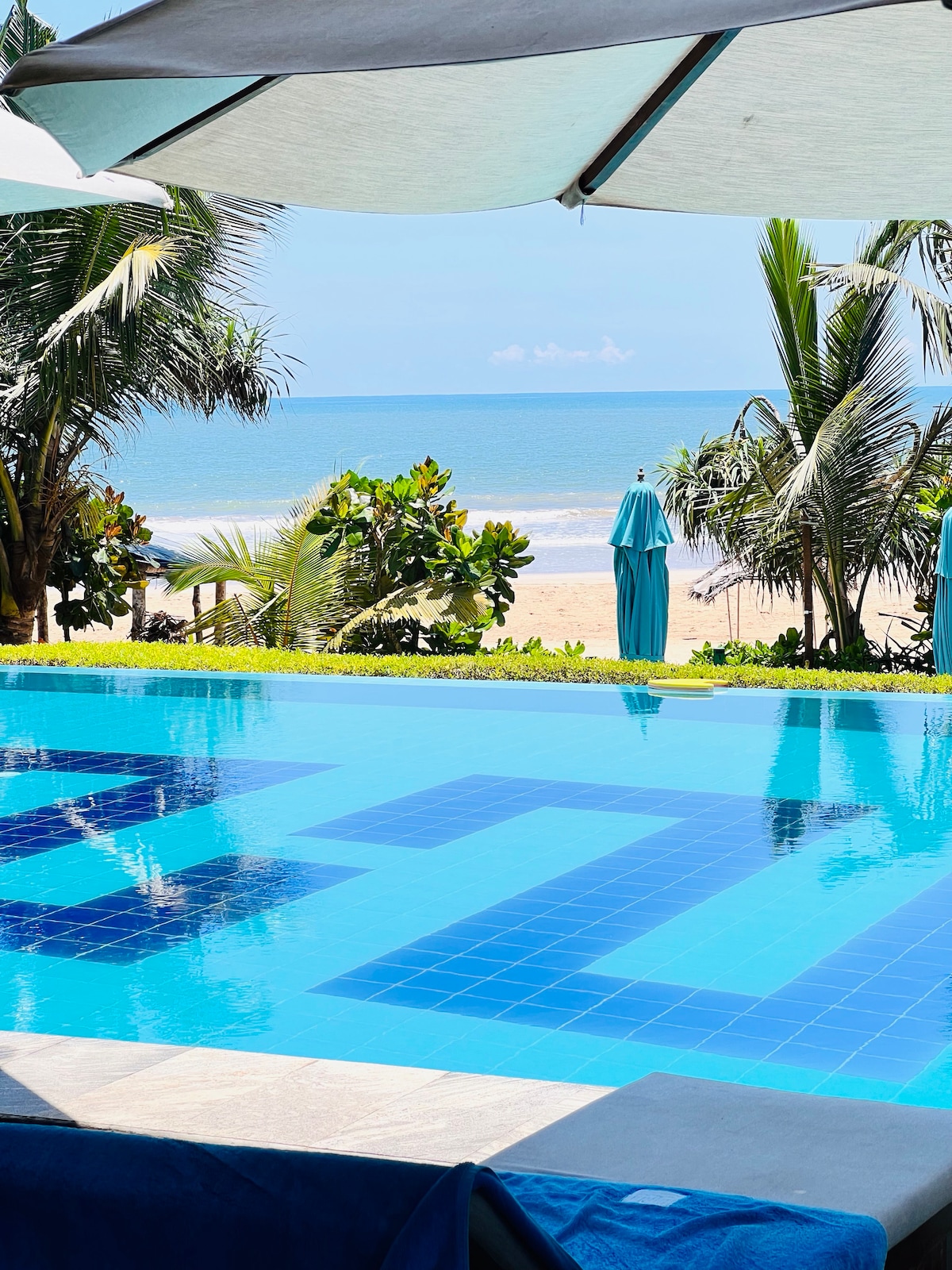 Villa absolutamente frente a la playa con piscina.
