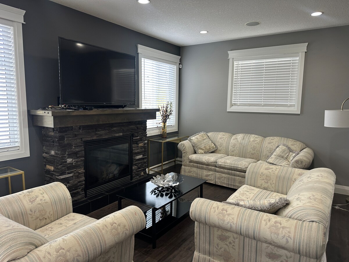 ¡Acogedor hogar lejos de casa en Grande Prairie! Esta espaciosa suite superior cuenta con 3 dormitorios, 2 baños, una cocina totalmente equipada con encimeras de piedra, un comedor y una sala de estar con Roku para streaming. La suite principal tiene una cama tamaño queen, baño privado y vestidor, mientras que dos dormitorios más tienen camas dobles. Disfruta de lavandería privada, wifi, estacionamiento en la entrada, una gran terraza con impresionantes vistas al campo y una ubicación privilegiada cerca de tiendas, restaurantes, GP Hospital y el aeropuerto en el extremo oeste.