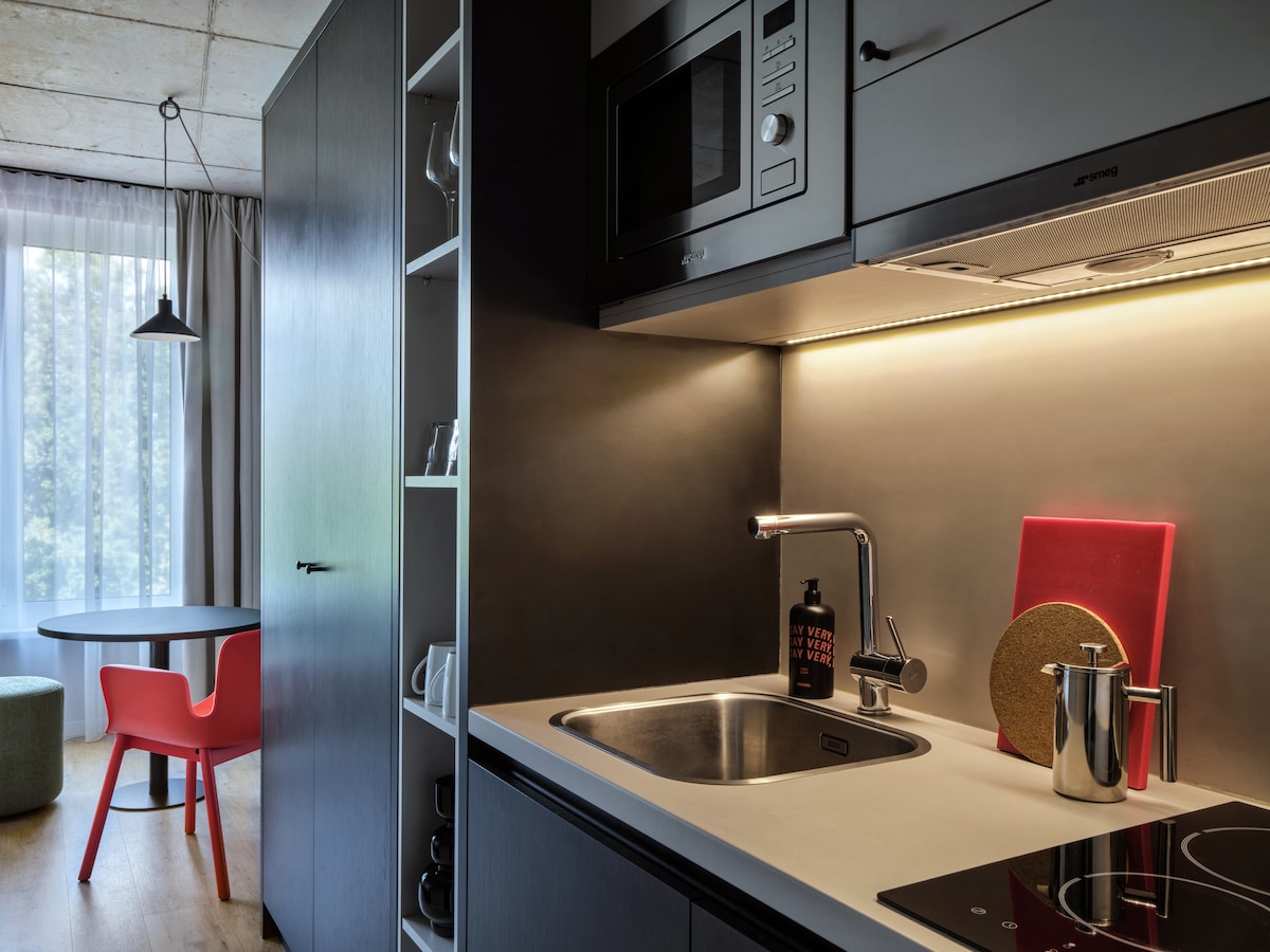 Ofrecemos una base de operaciones temporal que combina la comodidad de un apartamento con el servicio de un hotel. En STAYERY también puedes hacer todo lo que harías en casa y mucho más. Después de un día de descubrir el vecindario, puedes relajarte en tu cama de gran tamaño o tomar una cerveza en el salón pasando el rato con tus vecinos. Cocine su comida favorita en su cocina o traslade su oficina en casa a nuestro espacio de coworking. Igual que en casa. Eres muy, muy bienvenido.