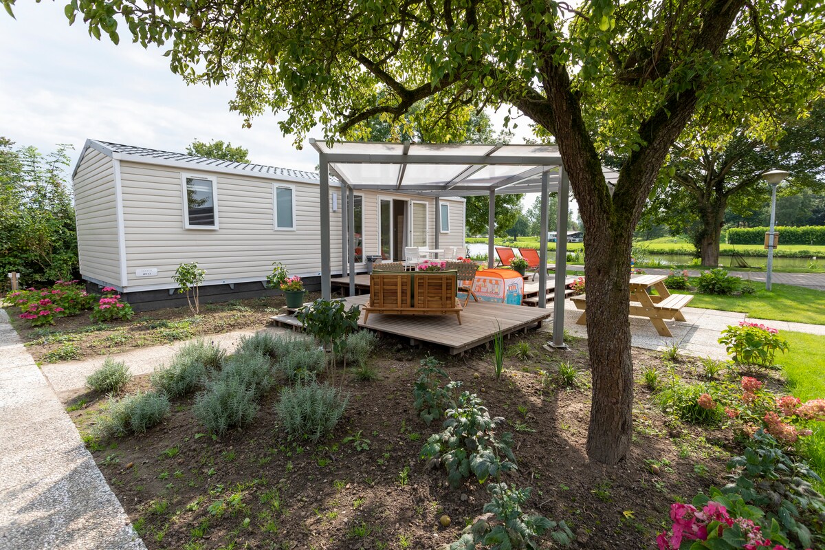 Casa móvil para 4 personas ( máximo 2 adultos) a partir de 2018 con terraza privada. Cocina equipada con nevera, microondas, estufa de gas, Senseo. Televisión por cable, WIFI y calefacción eléctrica. Dormitorio principal y dormitorio para niños. Ducha y aseo privados. Campo de césped privado con mesa de picnic, mesa de juegos acuáticos para niños (solo en verano) Estacionamiento privado directamente junto a la casa móvil. Esta caravana está diseñada para familias con niños. Por lo tanto, no permitimos más de 2 adultos en esta caravana.