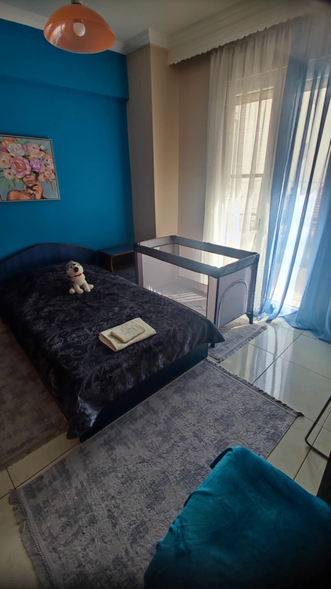 Es un apartamento en el centro de Florina, soleado en ambos lados, con grandes espacios en el segundo piso. En un espacio hay un gran armario y una cama semidoble. El otro gran espacio es al mismo tiempo un segundo dormitorio y una sala de estar. Tiene una cama doble muy grande y un sofá cama esquinero. El edificio está cerca, literalmente al lado del mercado popular, en la calle principal de la ciudad y cerca del río y de toda la vida nocturna de Florina.