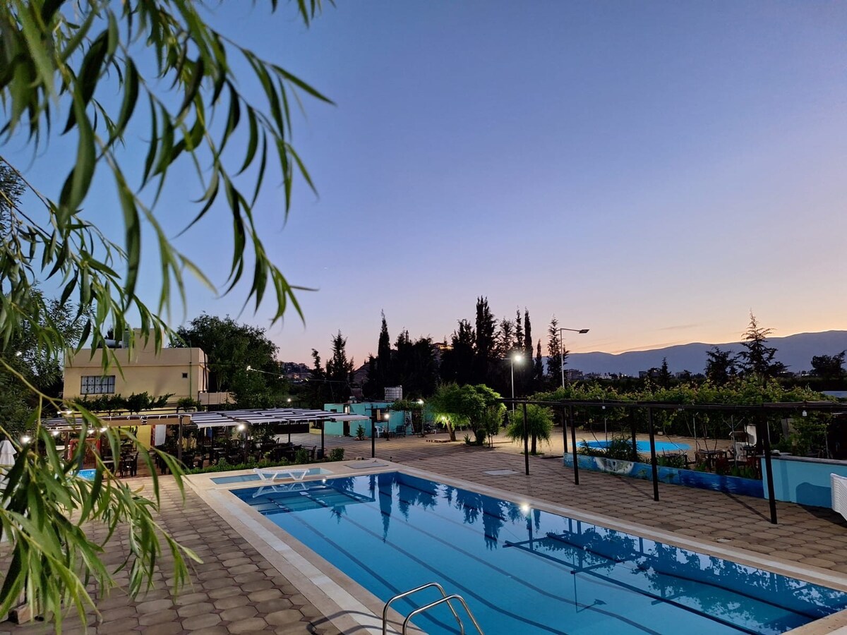 ¡Bienvenido a Kaia Guesthouse en Barouk Chouf!🏡 Disfruta de una estancia acogedora en Kaia: •1 dormitorio (con 2 camas, 2 camas adicionales de madera disponibles) • Baño, sala de estar (2 sofás para dormir) y cocina equipada con nevera, microondas, dispensador, cocina de gas y todos los utensilios de cocina necesarios. • Electricidad y wifi 24/7 •Alojamiento para hasta 6 personas Disfruta de acceso exclusivo a nuestro jardín privado con una vista impresionante⛰️, fogata🔥, piscina, área de 🏊barbacoa 🍗 Delicioso desayuno: 7 $/persona