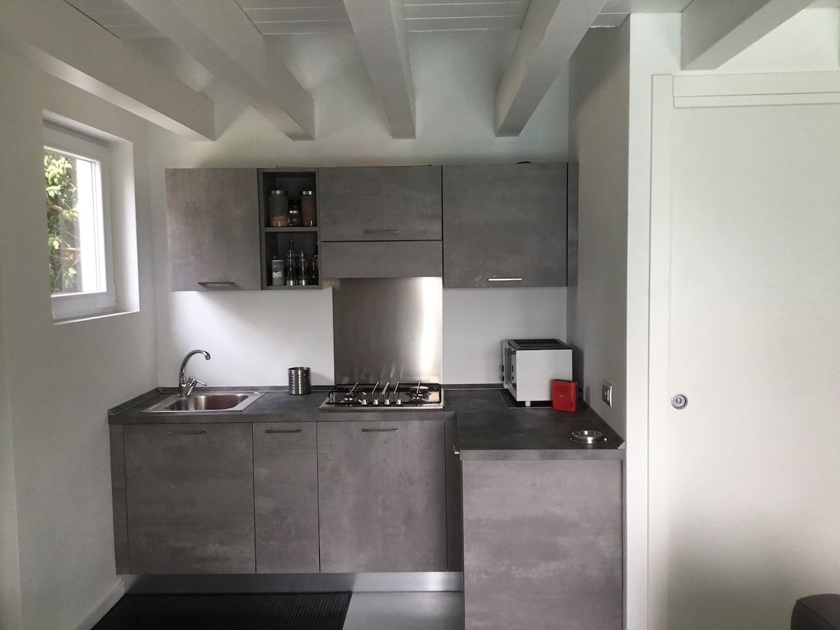 Recientemente construido, 50 metros cuadrados, bien distribuido: una sala de estar con cocina completa, baño con una gran ducha, entrepiso - dormitorio con salida a la terraza habitable. El Paraíso Litle está amueblado con buen gusto con un estilo contemporáneo. Muy luminoso. Desde la sala de estar, acceso directo a la piscina con solárium, inmerso dentro de un parque privado con vistas al lago Iseo. Paseos por el bosque, aroma a naturaleza, baño en la piscina o en el lago... Ideal para unas relajantes vacaciones...