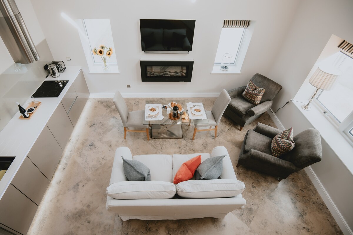 Spire View se encuentra en el corazón de la ciudad de granito, justo al lado de Union St. Un apartamento de lujo de dos dormitorios de planta abierta, espacioso y de diseño contemporáneo, la propiedad ha sido decorada artísticamente y terminada con los más altos estándares. El alojamiento tiene 2 dormitorios, cada uno con cama tamaño king y uno con baño privado. La cocina moderna cuenta con un enfriador de vino, lavavajillas y microondas integrados, así como un grifo de agua hirviendo para tu comodidad. ¡No querrás perderte la oportunidad de alojarte aquí!