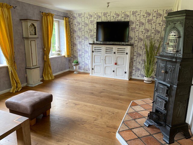 La finca se encuentra entre Niebüll y Risum-Lindholm. Olvídate de tus preocupaciones y disfruta de la tranquilidad en medio de los campos. Disfruta de la suave brisa del norte de Frisia en la terraza con una taza de café. Haz una excursión en bicicleta por el dique hasta Dagebüll (13 km) y desde allí hasta Föhr o Amrum. El camino a Sylt o Dinamarca tampoco está lejos... Si el clima del norte de Frisia muestra su lado oscuro, la chimenea está lista con su acogedor calor.