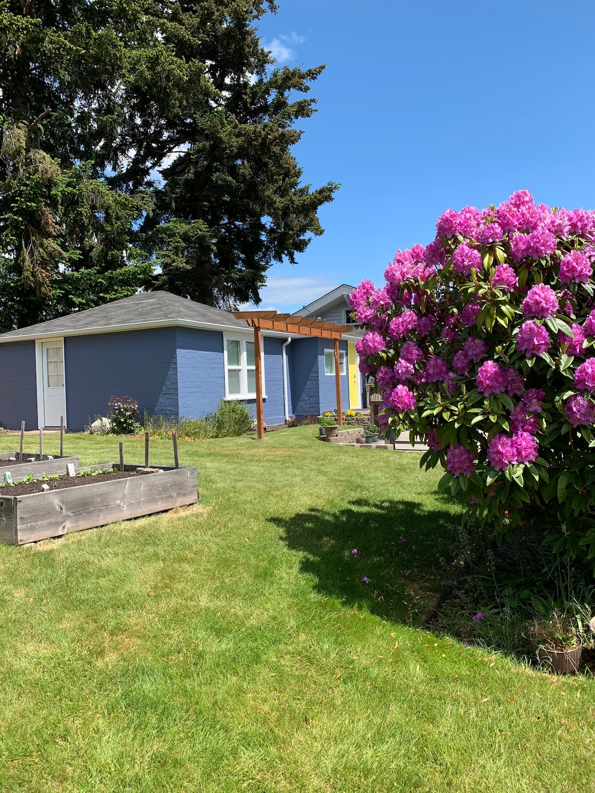 Bienvenido a esta serena y espaciosa escapada a una granja. Ubicado en la hermosa isla sur de Fidalgo, estás a 7 minutos del puente Deception Pass, a 13 minutos del centro de Anacortes y a 17 minutos de la terminal de transbordadores a las islas San Juan. Acurrúcate con un buen libro, ve una película o simplemente relájate y disfruta de nuestra hermosa vista del norte de la isla Whidbey y Deception Pass. Nuestros jardines están en su máximo esplendor en verano, así que no dudes en pasear y recoger flores, frutas o verduras de temporada.