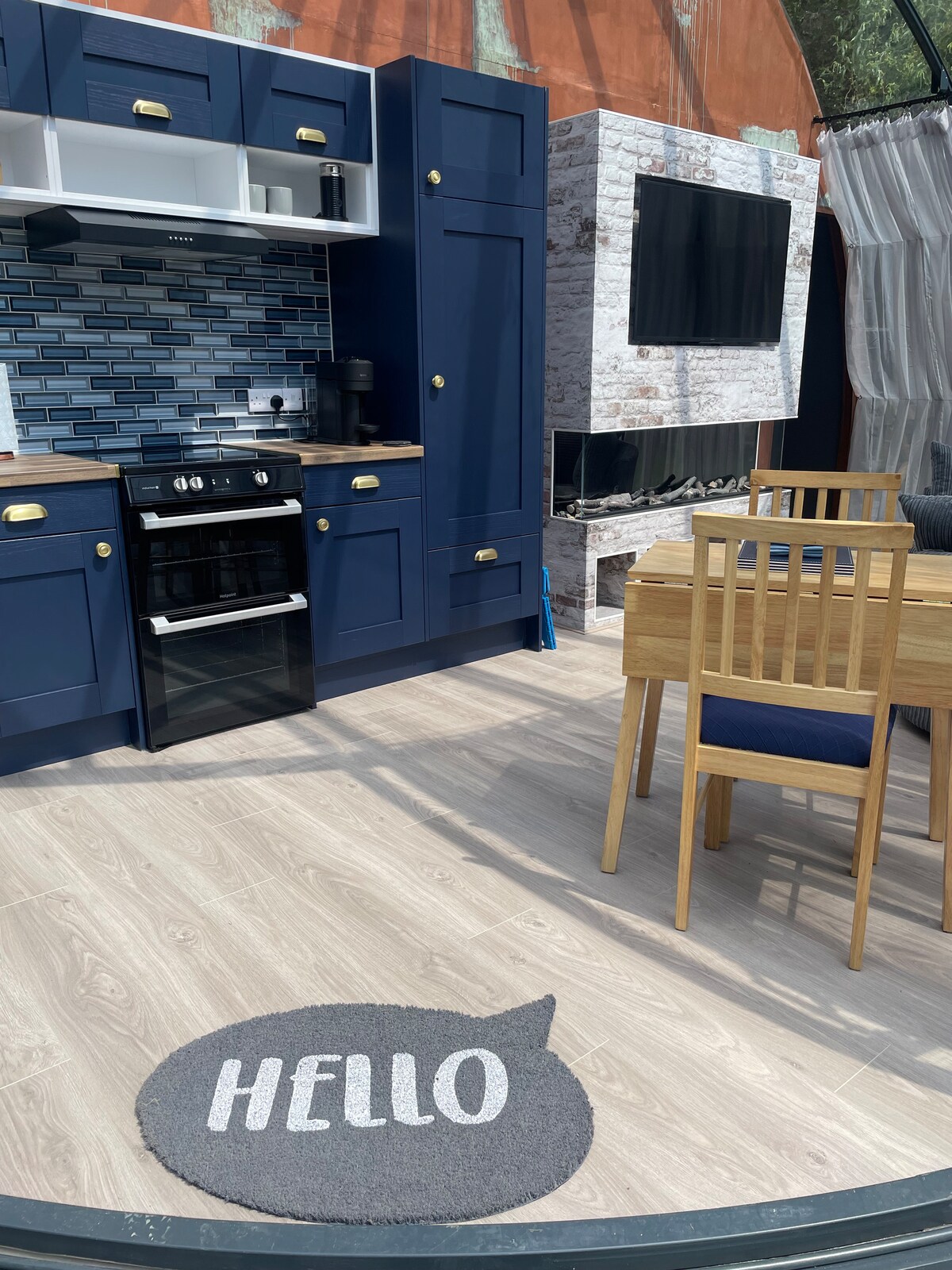 Rutland, bañera de cobre para exteriores y acogedora estufa de leña