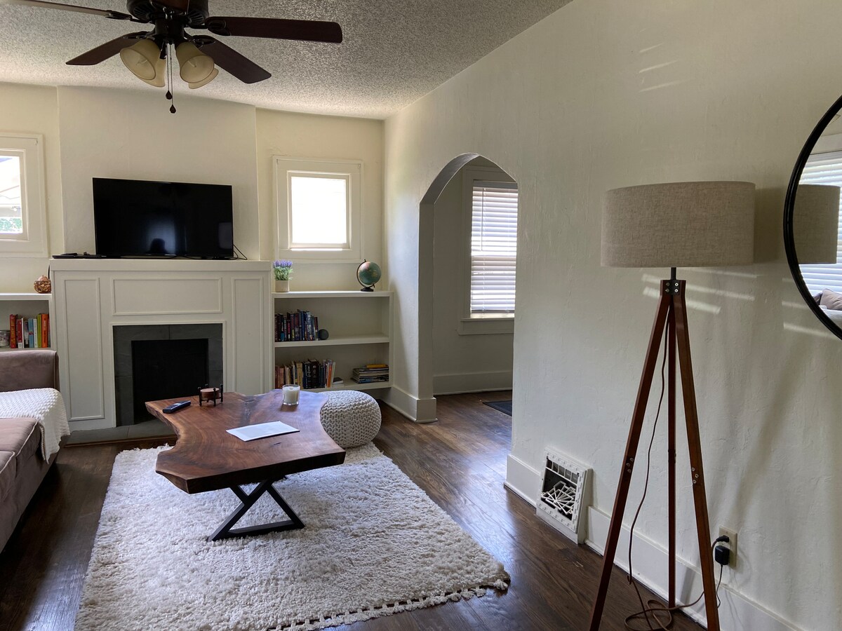 ¡Ven a alojarte en un pedazo de historia de Kechi! Esta casa de campo fue una vez una tienda de antigüedades cuando Kechi fue nombrada la Capital de las Antigüedades de Kansas. A principios de la década de 2000 fue renovada y convertida en una encantadora casa de 2 dormitorios y 1 baño. Ubicada en un barrio tranquilo, lo suficientemente lejos de la ciudad. Ven a experimentar la vida en una pequeña ciudad y todo lo que Kechi tiene para ofrecer. Mañanas tranquilas y tardes llenas de diversión te esperan en esta experiencia única. ¡Cocina completa, habitaciones amplias, acogedor porche delantero y trasero, juegos familiares y una cafetería!