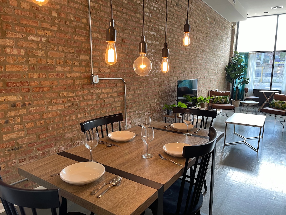 Disfruta de una entrada privada a tu apartamento frente a la calle en la intersección de los barrios de Bucktown, Wicker Park, Humboldt Park y Logan Square. Fácil acceso al transporte. Descansa con comodidad y échale un vistazo al sendero elevado 606, Humboldt Park, restaurantes, tiendas y vida nocturna. El apartamento bien equipado cuenta con ladrillo visto, iluminación única y dormitorio elevado. ¿Antropólogo? Mira la escena callejera a través de un solo cristal. Puedes verlo, pero tus temas no pueden entrar.