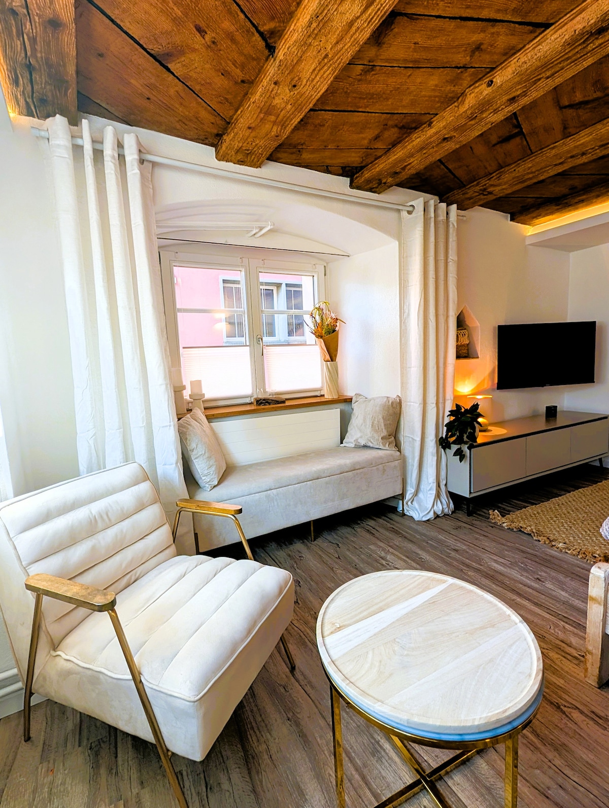 ¿Te encanta el arte y la historia? ¿Estás pensando en los romanos todos los días? Mi casa de 400 años, construida sobre los cimientos de una torre romana, fue una vez parte de un castillo y está llena de historia, libros, arte, música, inspiración y amor. Te damos la bienvenida a "The Artist's Castle", mi castillo Kunterbunt. Aquí, la historia se encuentra con buenas vibraciones. Respira, sé tú. ¿Quieres crear? El taller y el taller te están esperando. Con vistas al río en mi histórico oasis en el Eglisau medieval.
