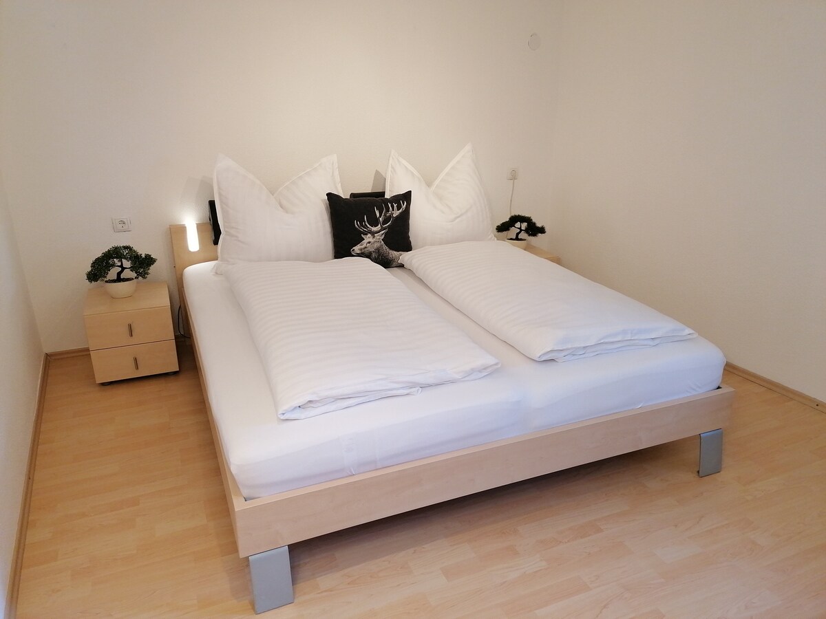 Estamos encantados de darles la bienvenida como huéspedes en nuestro apartamento de 1 habitación en el borde del bosque. El pequeño apartamento Waldeck tiene una cocina bien equipada, un comedor con TV, una cama de muelles de 1,80 m de ancho y una ducha con WC. Wifi disponible de forma gratuita. La entrada de la casa está al nivel del suelo, luego se baja una escalera. El apartamento, con una terraza de 18 m² y asientos, también está al nivel del suelo, ya que nuestra casa está en una ladera. El impuesto turístico se añade al precio final.