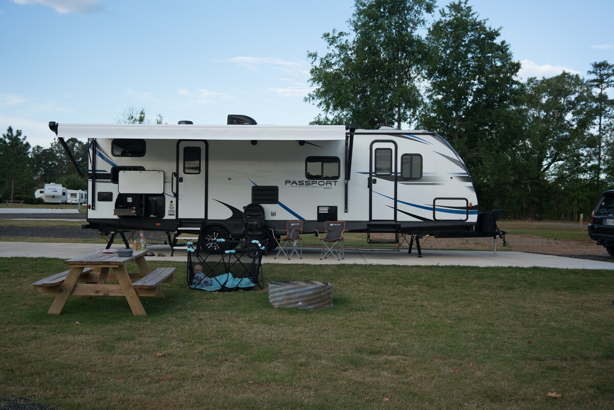Passport GT Ultra Light 2020. Está totalmente equipado con una cocina completa y baño, sofá de cuero reclinable, comedor grande convertible, 2 literas de tamaño completo y dormitorio privado con cama tamaño queen. ¡Mucho espacio para guardar todo tu equipo! En el exterior, la caravana cuenta con un toldo grande con tira de luz LED, altavoces de alta calidad, una cocina al aire libre con estufa y mininevera y ducha al aire libre. ¡El exterior de la caravana también está cableado para la televisión, lo que la convierte en una caravana ideal para hacer tailgating!