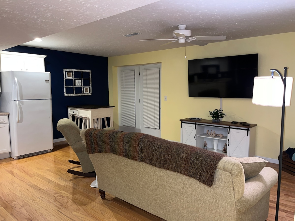 ¡A solo 1 milla del Arca! Nuestra Southern Belle es perfecta para una escapada familiar con todas las comodidades de casa. Ubicado en el centro entre Cincinnati y Lexington, es el lugar ideal para planificar una excursión de un día en cualquier dirección. Todo NUEVO interior, 1 nivel, 1 baño completo, 2 dormitorios con camas tamaño king, sofá cama para el quinto huésped. ¡Se proporciona ropa de cama! No hay lavadora ni secadora Cocina equipada para comer, sala de estar con TV inteligente y patio con fogata DE GAS. WIFI GRATUITO, cable y suficiente café con todos los accesorios para 1 olla al día.