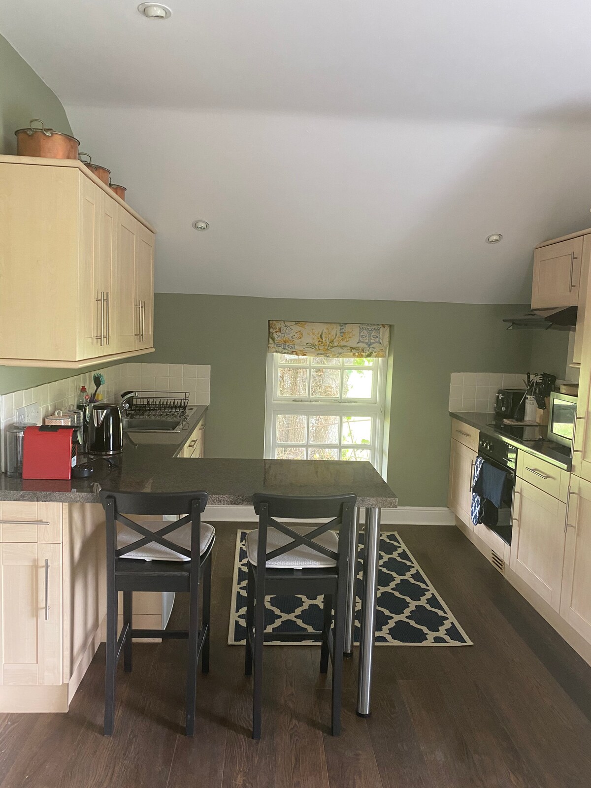 El pajar es muy antiguo, pero lo hemos convertido en una suite de 2 dormitorios (una cama doble y una gran cama redonda en el altillo) con un «baño cobertizo» y un gran salón. Está en la parte superior de nuestra propia casa (encima de la cocina), pero tiene una entrada privada independiente y una puerta que da al jardín. No hay cocina, ¡piensa en habitaciones de hotel en lugar de en cocina americana! Está justo en el corazón del pueblo, a un par de cientos de metros de buenos restaurantes, pubs antiguos y tiendas independientes.
