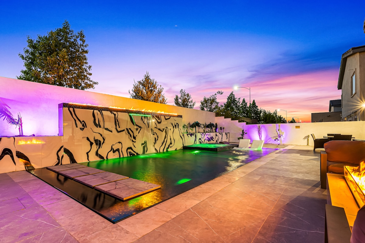 ¡Bienvenido a tu escapada perfecta al desierto! Esta lujosa casa de dos pisos es ideal para fines de semana en familia o viajes de negocios, ya que cuenta con un diseño abierto y un amplio patio trasero con una reluciente piscina de entrenamiento, un área de juegos, minigolf y cancha de bádminton. En el interior, disfrute de ping-pong, máquinas recreativas y fútbol. A 20 minutos a pie de todas las tiendas que pueda necesitar. A 20 minutos en auto de The Strip. ¡¡¡Barrio muy seguro con restaurantes cercanos y cerca del Parque Nacional Red Rock Canyon!!! ¡¡¡Ideal para niños o escaladores!!!