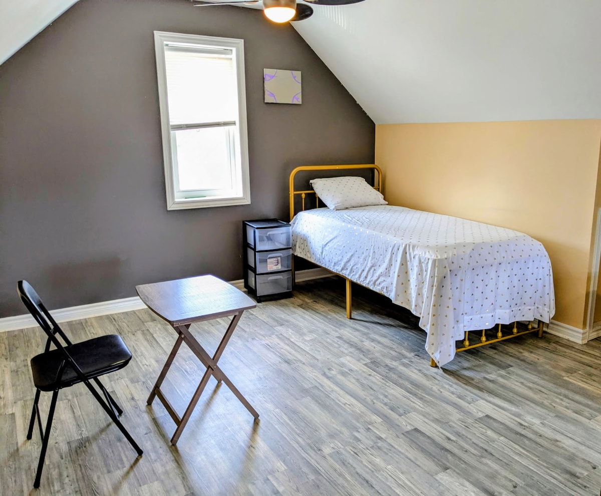 ¡Un loft en el tercer piso con vistas! En la residencia del Detroit Zen Center. El loft tiene vistas a nuestro techo verde, con baño completo y cocina pequeña. Un dormitorio espacioso adyacente con sala de estar debajo del loft en alquiler para grupos más grandes. Incluye granola casera y acceso a meditación, jardines, cocina completa, áreas comunes, en un barrio ecléctico y transitable en el centro de Detroit: Hamtramck. Fundada en 1990, su estancia ayuda a nuestra comunidad Zen a seguir brillando en un rincón del mundo. Estancias largas disponibles disponibles.