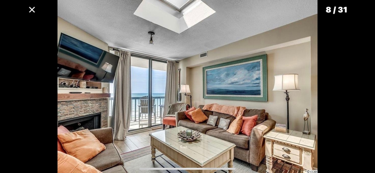 Disfruta de una estancia inolvidable para ti y tu grupo de hasta 8 personas en este apartamento en el último piso frente al mar. Siéntate en el balcón con vistas al mar mientras escuchas las olas y bebes tu taza de café caliente o un cóctel refrescante. Este apartamento de 3 dormitorios es el lugar perfecto para tu próxima escapada con familiares o amigos. ¡Ven a crear tu próximo recuerdo de playa con nosotros! ¡Envíame un mensaje hoy para obtener ideas sobre cómo hacer que tu estancia sea inolvidable y descuentos para militares!