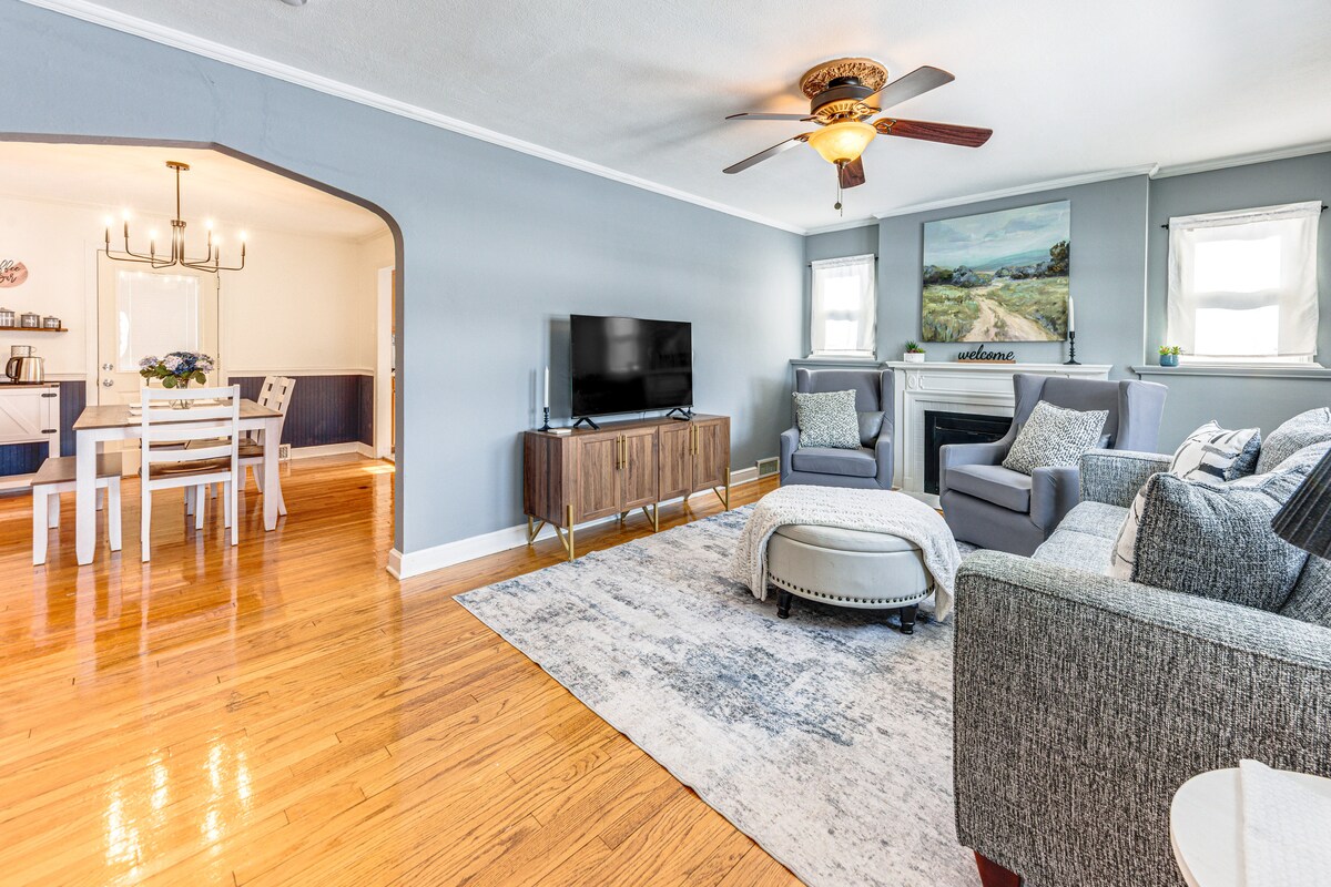 Casa de estilo Cape Cod de 1940 totalmente remodelada con entretenimiento, oficina y solárium. Convenientemente ubicada en el corazón de Rockford, esta elegante casa está cerca de tiendas, restaurantes y atracciones del centro de la ciudad. Cuenta con dos dormitorios y dos baños completos. La sala de oficinas en el primer piso tiene un futón que se convierte en una cama completa si es necesario. El wifi de alta velocidad, la consola Roku Ultra y Xbox pueden hacer que tu estancia sea aún más agradable. Sé tu propio chef en la cocina totalmente equipada con electrodomésticos nuevos.