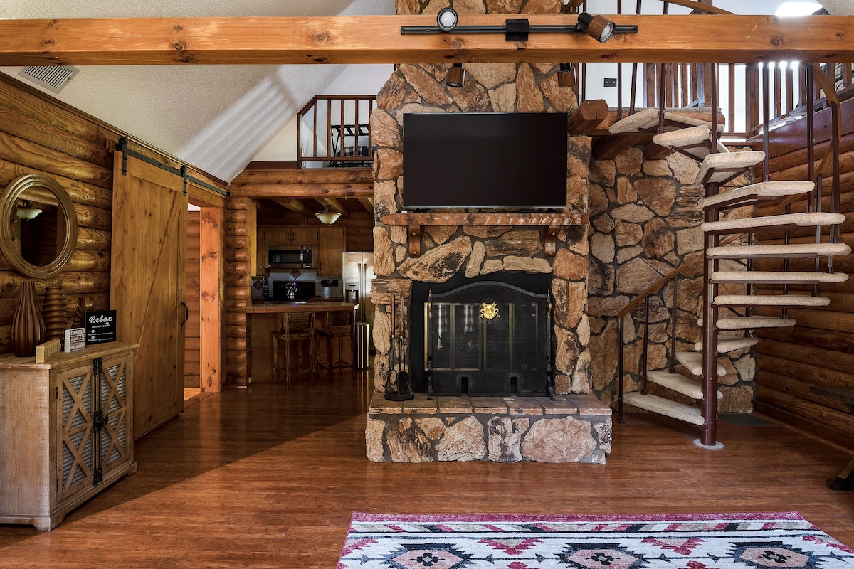 Esta pintoresca casa de madera ofrece una escapada de montaña, a poca distancia en coche de la ciudad, donde te rodean pinos imponentes y abundante aire fresco. Con techos abovedados, una chimenea de piedra y hermosas vigas a la vista, la casa irradia encanto. Acomódate para pasar una noche alrededor de la chimenea, juega a los juegos de arcade y al billar o acércate al fuego con un buen libro. Estarás a solo 4 minutos de un supermercado y a solo 20 minutos del corazón de la ciudad, lo que te ofrece la mejor escapada urbana.