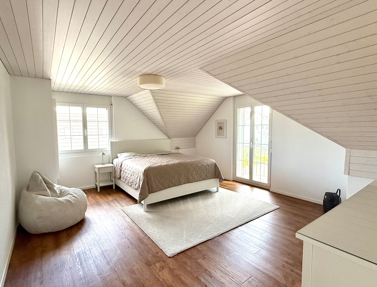 Modern villa with stunning architecture, a private garden, and panoramic views just minutes from Zurich and the airport. Enjoy a fully equipped kitchen, cozy chimney, 3 bedrooms (extra beds on request), 2 bathrooms, and a heated cellar that can serve as an extra room. Two dedicated office spaces make it perfect for remote work. Relax in the private home cinema or unwind in the garden for the ideal mix of comfort and style.