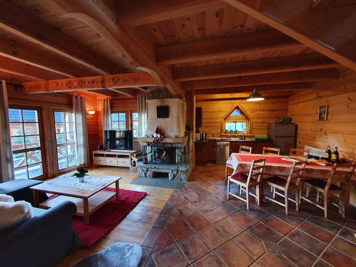 „Klimkówka“ built entirely of half timber logs, equipped in handmade furniture offers comfortable accommodation for 4 people. Unique design, smell of wood and surrounding garden with a mountain view, will give you memorable experience.
