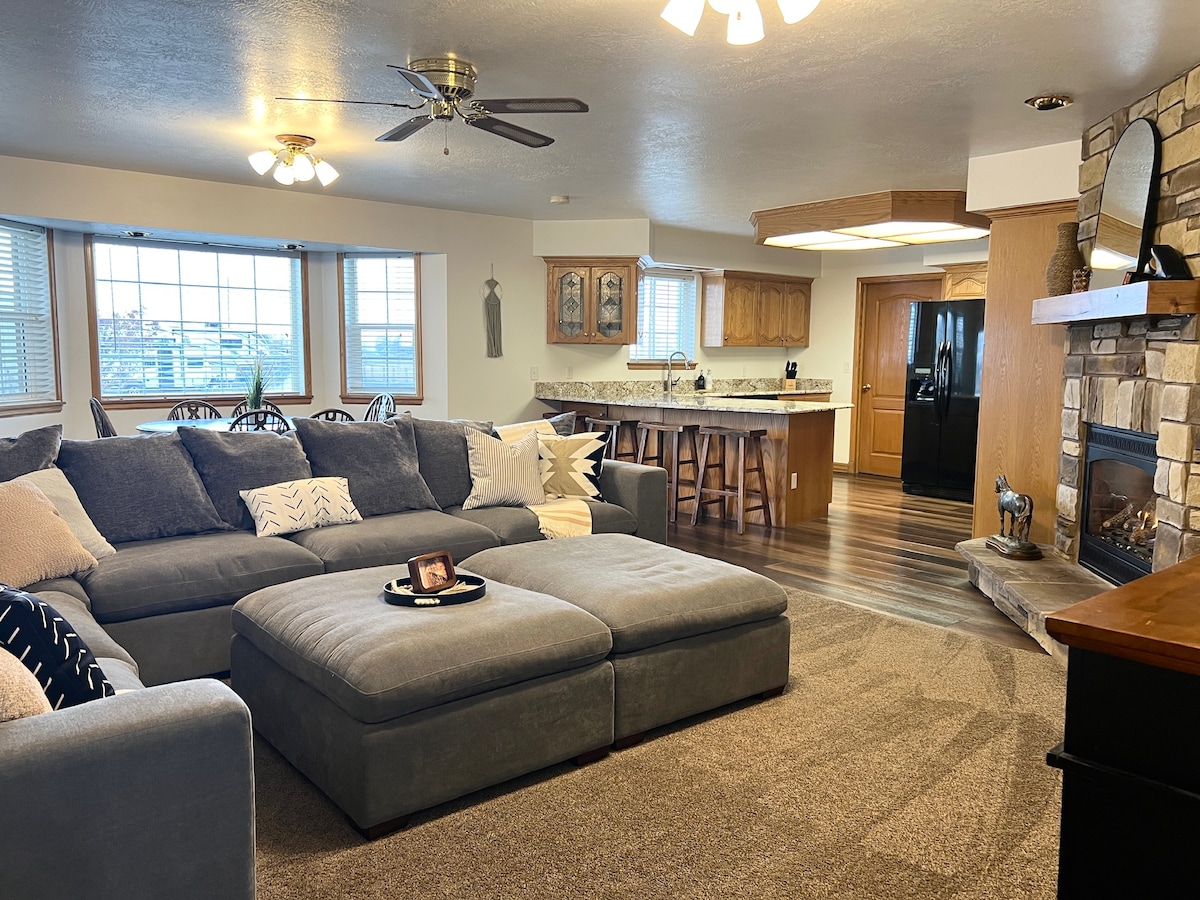 Aproximadamente 2200 pies cuadrados de sótano. Totalmente amueblado con una cama tamaño king, futón, literas dobles, cama individual con canapé, sofá cama, sofá gigante, lavadora/secadora, mesa de ping pong y dos baños. Una chimenea de gas y suelos radiantes, lo mantienen agradable y cómodo en invierno. El patio trasero y la parrilla son agradables en verano. Disfrutarás del agradable y tranquilo barrio, cerca de las carreteras rurales de Payson y a solo 20 minutos de Provo y de la estación de esquí Sundance, en esta adorable «ciudad estanque» llamada Salem.