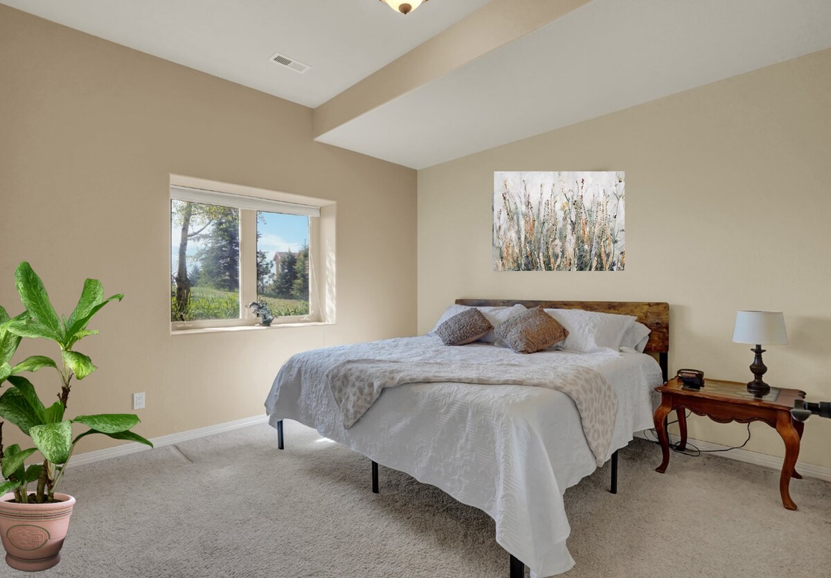 Bienvenido a tu sereno apartamento privado con vistas a las montañas en el centro histórico de Monument. Esta unidad superior actualizada tiene 2 dormitorios, cada uno con su propio baño en suite, y una sala de estar/cocina de concepto abierto. La terraza es espaciosa y tiene hermosas vistas a la montaña, ¡perfecta para disfrutar del sol de Colorado! A poca distancia a pie de las tiendas y restaurantes del centro de Monument, así como de la ruta de senderismo de Santa Fe. ¡Mientras que USAFA, N CO Springs y otras atracciones están a poca distancia en coche!