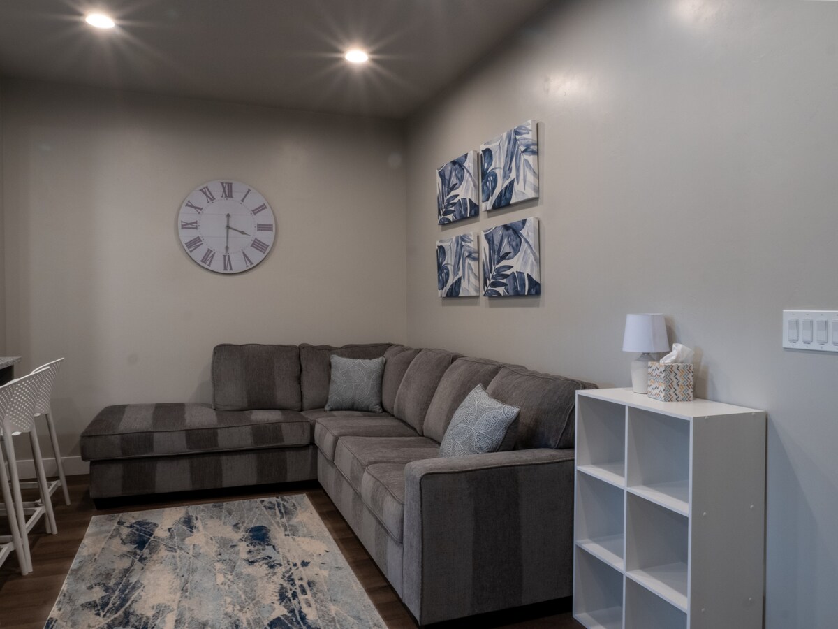 Trae a toda la familia a esta hermosa parte de arriba de este lindo y acogedor lugar. Está al otro lado de la calle de un parque escolar y a solo 0,2 millas del centro de la ciudad para cenar, ir de compras y entretenerse. Disfruta de una cocina totalmente equipada, wifi rápido y televisión lista para streaming. Relájate en cómodas habitaciones, con un colchón de aire disponible bajo petición, lo que lo hace perfecto para familias o amigos que buscan comodidad y confort.