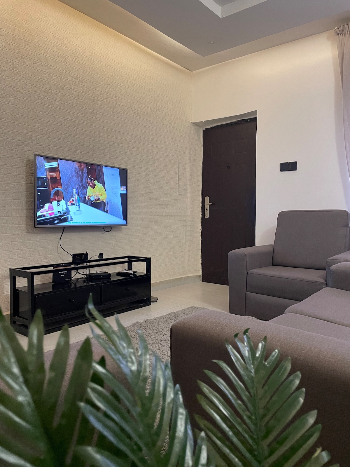 Un encantador apartamento de un dormitorio ubicado en el corazón de Wuse 2, viene con un sofá, una zona de estar, un televisor inteligente de pantalla plana con suscripción completa a DSTV, wifi gratuito con Netflix, una bicicleta para hacer ejercicio, una cocina bien equipada y un baño privado. También se proporcionan microondas, nevera y horno, así como tetera eléctrica y electricidad las 24 horas.