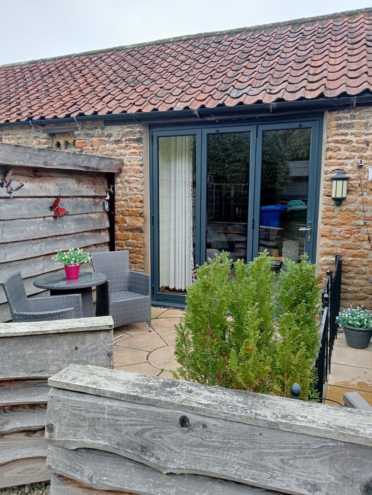 Casa de campo independiente de un dormitorio apta para perros. (sin cargo para perros) con jacuzzi. Gran jardín totalmente vallado apto para perros. Situado en el hermoso pueblo rural de Ruston, North Yorkshire. Aparcamiento para huéspedes, patio privado cerrado con patio y bañera de hidromasaje. Puertas plegables que conducen a un salón bien equipado, comedor y cocina moderna totalmente equipada. Dormitorio con cama tamaño king, espacio para colgar, espejo de cuerpo entero y televisión que conduce al baño con ducha y toma de corriente para afeitadora. Los enchufes USB están disponibles