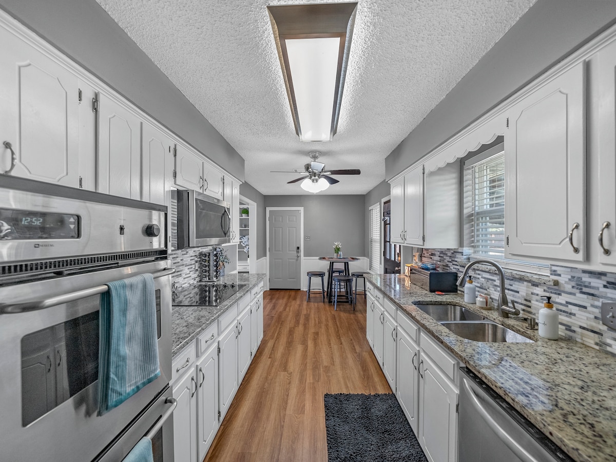Atraviesa una de las puertas correderas de vidrio de 12 pies de ancho para ver la puesta de sol desde el patio mientras la barbacoa incorporada cocina la cena junto al césped sintético y una bañera de hidromasaje y piscina privadas climatizadas. Un interior de concepto abierto significa espacio en abundancia, mientras que el baño principal tiene una gran ducha de efecto lluvia de doble cabezal y un tocador doble. La cocina está totalmente equipada con hornos dobles, una máquina de café espresso Jura y una enorme isla de cocina. Relájate y disfruta de la gran sala de estar de concepto abierto o entrena duro en la bicicleta Peloton.