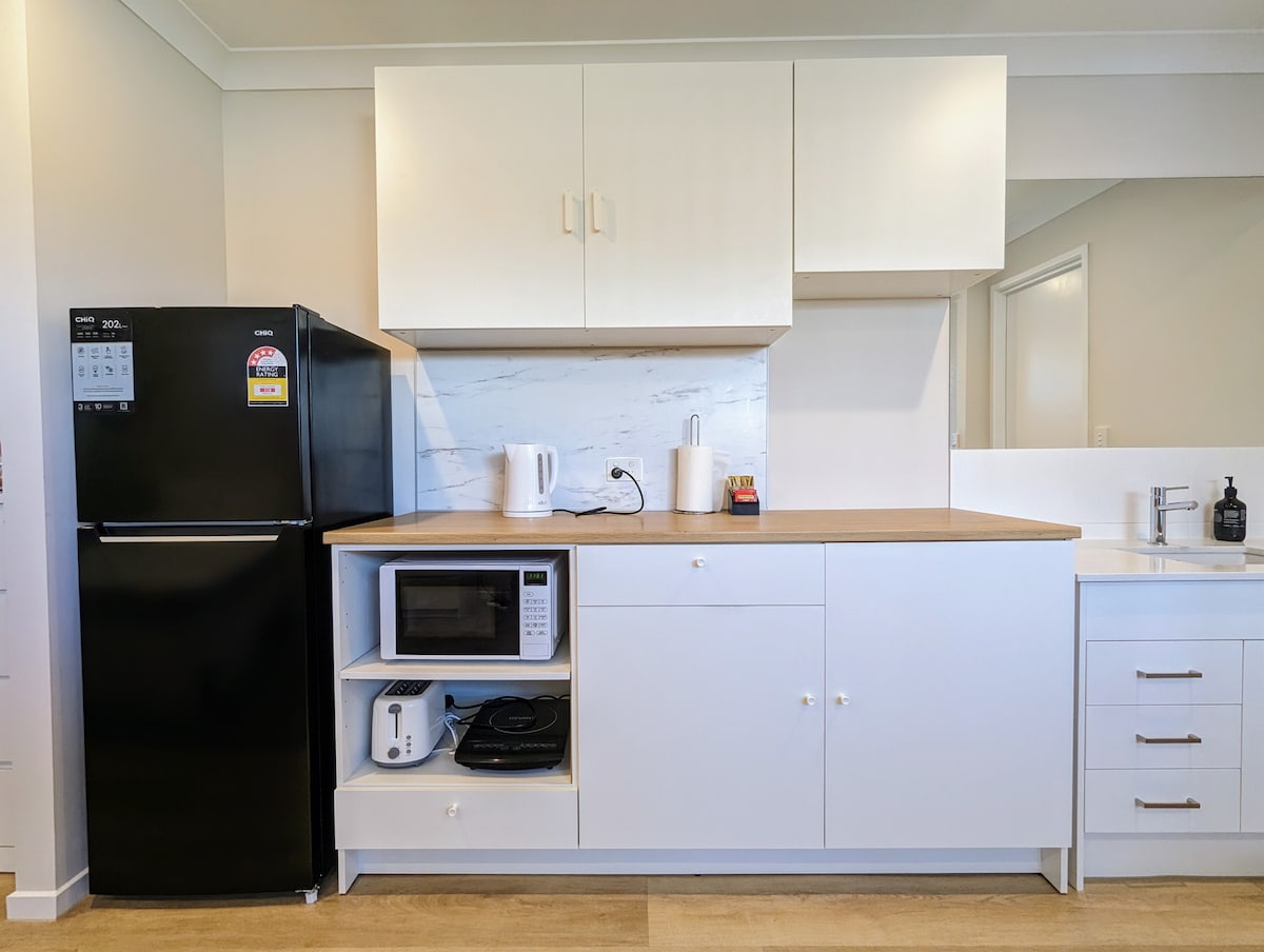 Soak up the nautical vibe at an Eco conscience self-contained abode.Enjoy a modern building, with fast internet, EV charger and quality furniture. Open up the living's sliding doors to catch sea breezes and step out onto the terrace nestled in a shared garden. Ideal for 2, but a foldout sofa in the living allows 4 people (age 12 and above) to sleep in the apartment. The unit is equipped to accommodate people looking for longer stays, but also very suitable for a quick stay.