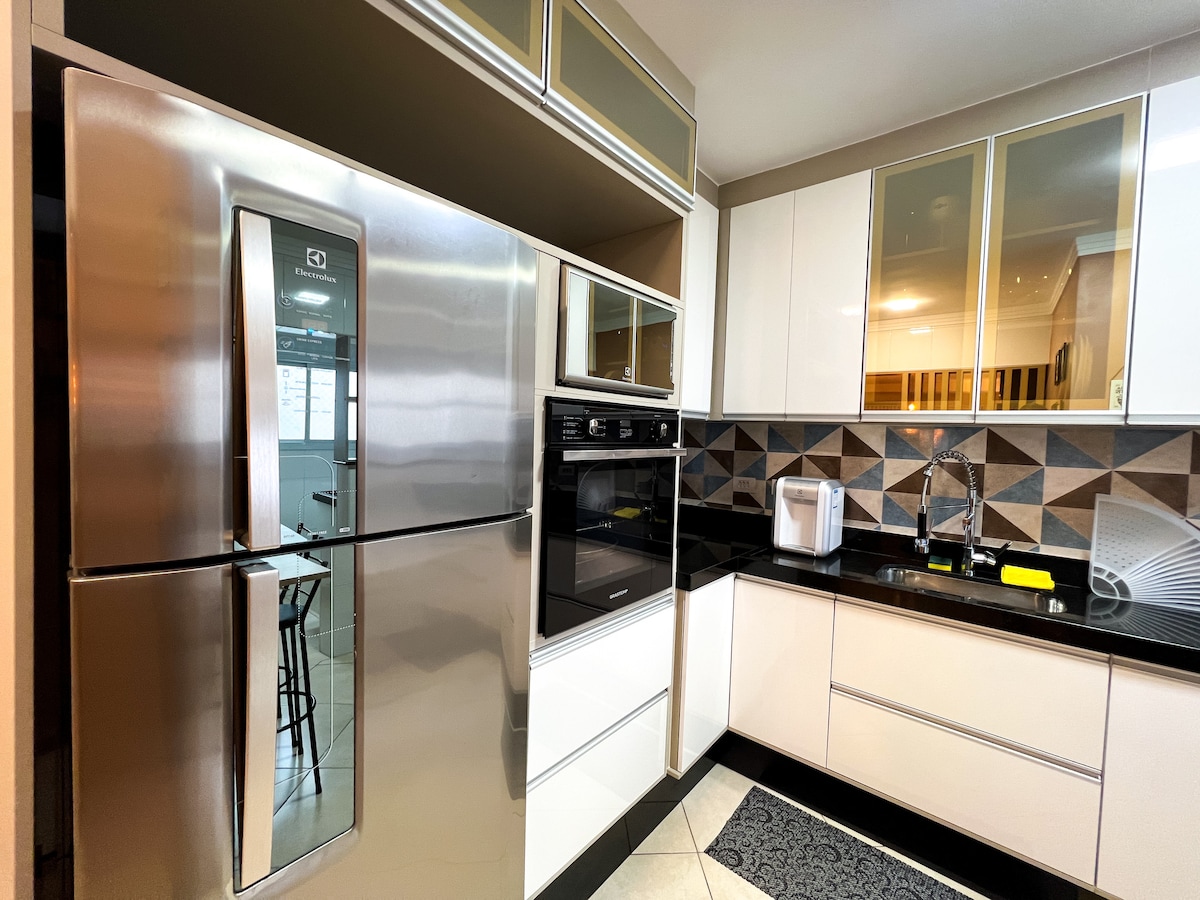 Apartamento moderno y cómodo en el barrio más seguro de Praia Grande. Cuenta con tres dormitorios y dos baños, cocina totalmente equipada, sala de estar y balcón integrados, así como todos los entornos con aire acondicionado para garantizar una experiencia de máxima comodidad. Tanto la esquina de Praia do de Forte como Mallet Avenue, con restaurantes y bares, están a pocos minutos a pie desde el departamento. 2 plazas de aparcamiento en el garaje. Por regulación interna, no se permite aprovechar las áreas comunes del edificio, como una piscina.