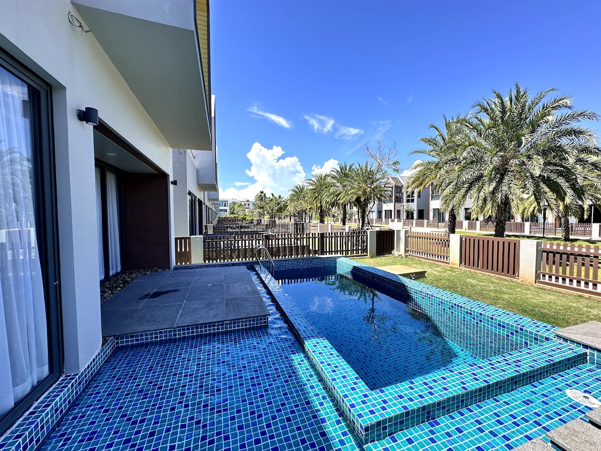 Relaxing 4 bedrooms and 4 bathrooms villa with private pool in NovaWorld Hồ Tràm area with beach access. Close to the Grand casino and Grand Golf, a world class golf course. Ideal for family or small group stays to enjoy quiet weekend getaway and vacation. Large living rooms, full kitchen, private bedrooms, high-speed Wi-Fi, A/C throughout. Outdoor relaxing by the pool, quiet and secure compound, access to beach and larger pool.