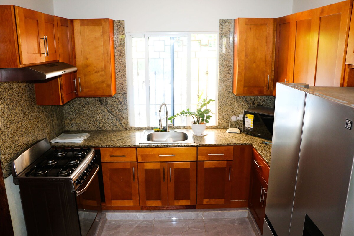 El loft de diseño moderno ubicado en el segundo piso de una casa de diseñador Francés con entrada independiente y terraza privada a minutos del parque Mirador Sur en una zona céntrica, residencial y tranquila de Santo Domingo. Con una fusión armoniosa entre lo urbano y lo natural. Grandes ventanales que permiten que la luz natural bañe el espacio, resaltando tonos tierra y verdes vibrantes. El loft con su propia terraza es un escape encantador en el corazón de la ciudad.