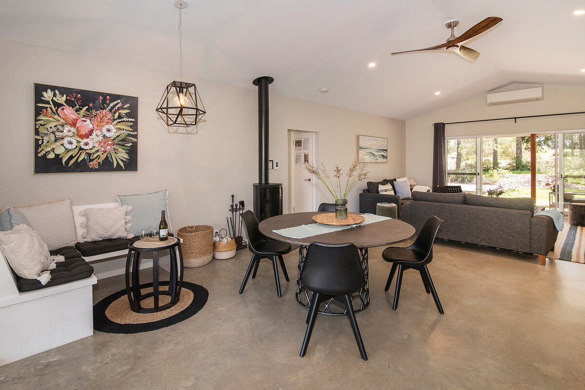 Situada entre algunas de las mejores bodegas del suroeste y a pocos minutos de playas emblemáticas como Smith's Beach y Yallingup Beach. La encantadora casa de campo de madera de los años 50 ha sido recientemente renovada con interiores hechos a medida, electrodomésticos nuevos, una mezcla ecléctica de antigüedades importadas de Francia y una variedad de cerámicas, pinturas y esculturas de artesanos locales de Australia Occidental. Tiene una envoltura ancha por excelencia alrededor de la terraza y una chimenea de salón íntima.