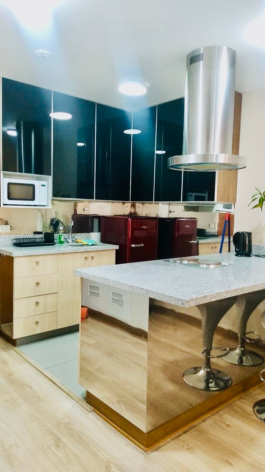 Departamento moderno y elegante con vista única a la ciudad, este espacio es amplio, luminoso y totalmente equipado. Relájate con TV gigante, comedor de mármol y bar de vinos. Cocina completa con refrigeradora de doble puerta, dispensador de hielo y Alexa para ambientar tu estancia. Conéctate con Wi-Fi veloz o relájate en el balcón amoblado con una copa y una vista espectacular. Perfecto para descansar o trabajar, a solo minutos de la Plaza de Armas.