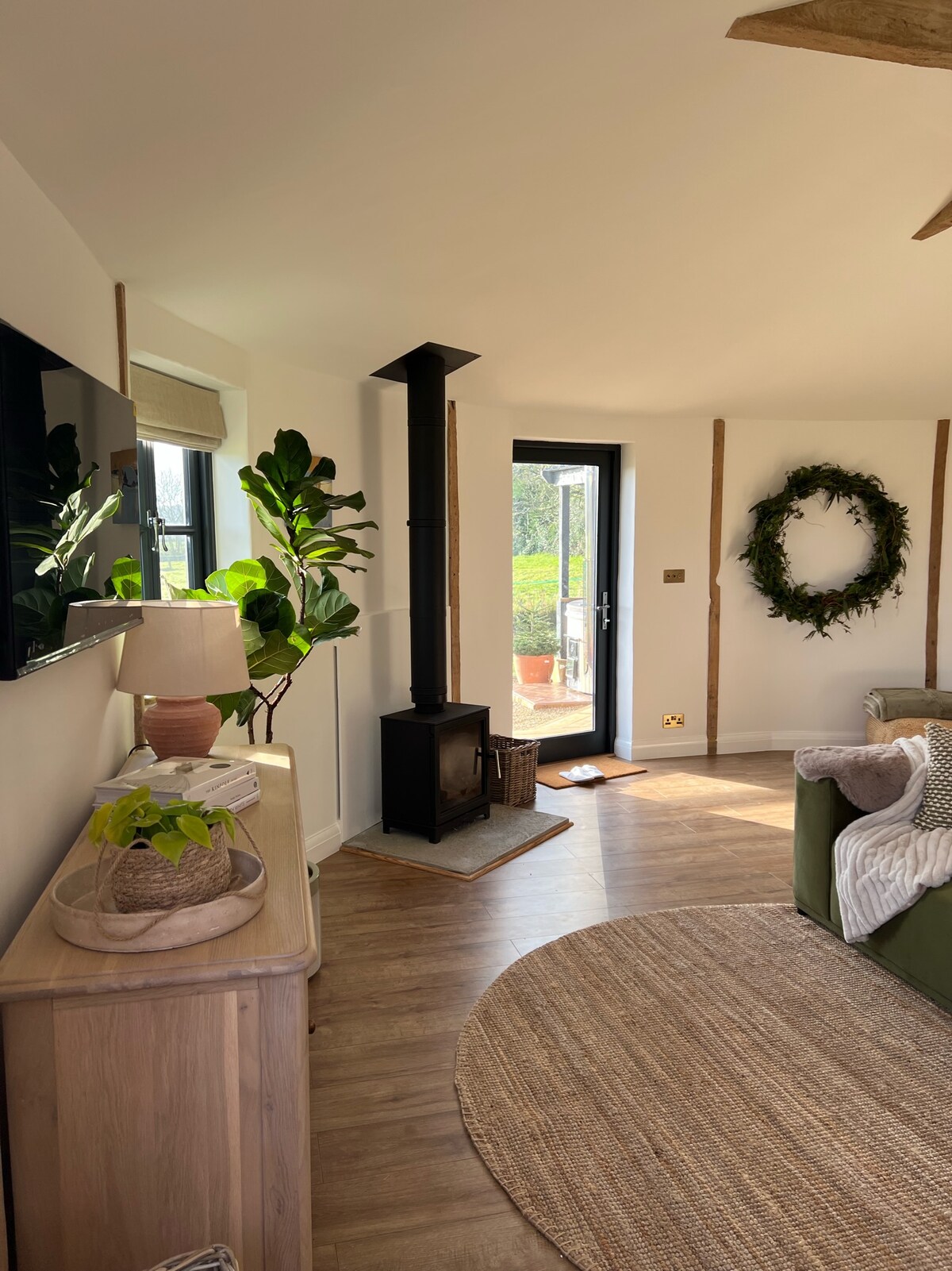 Un espacio tranquilo y profundamente lujoso para recargar energías y reconectar. The Shippon es un establo de vacas meticulosamente convertido con suelos de hormigón pulido y radiante, paredes de color verde oscuro suavemente curvadas, cocina hecha a mano, rincones de lectura cálidamente iluminados y materiales naturales. Mantas de lana, sofá de plumas, estufa de leña escandinava antigua, cama tamaño king con sábanas y edredón franceses, ducha de cascada y las toallas más suaves. Nuestra tranquila aldea de Devon solo está iluminada por las estrellas por la noche. Es posible que duermas mejor de lo que has dormido en años.
