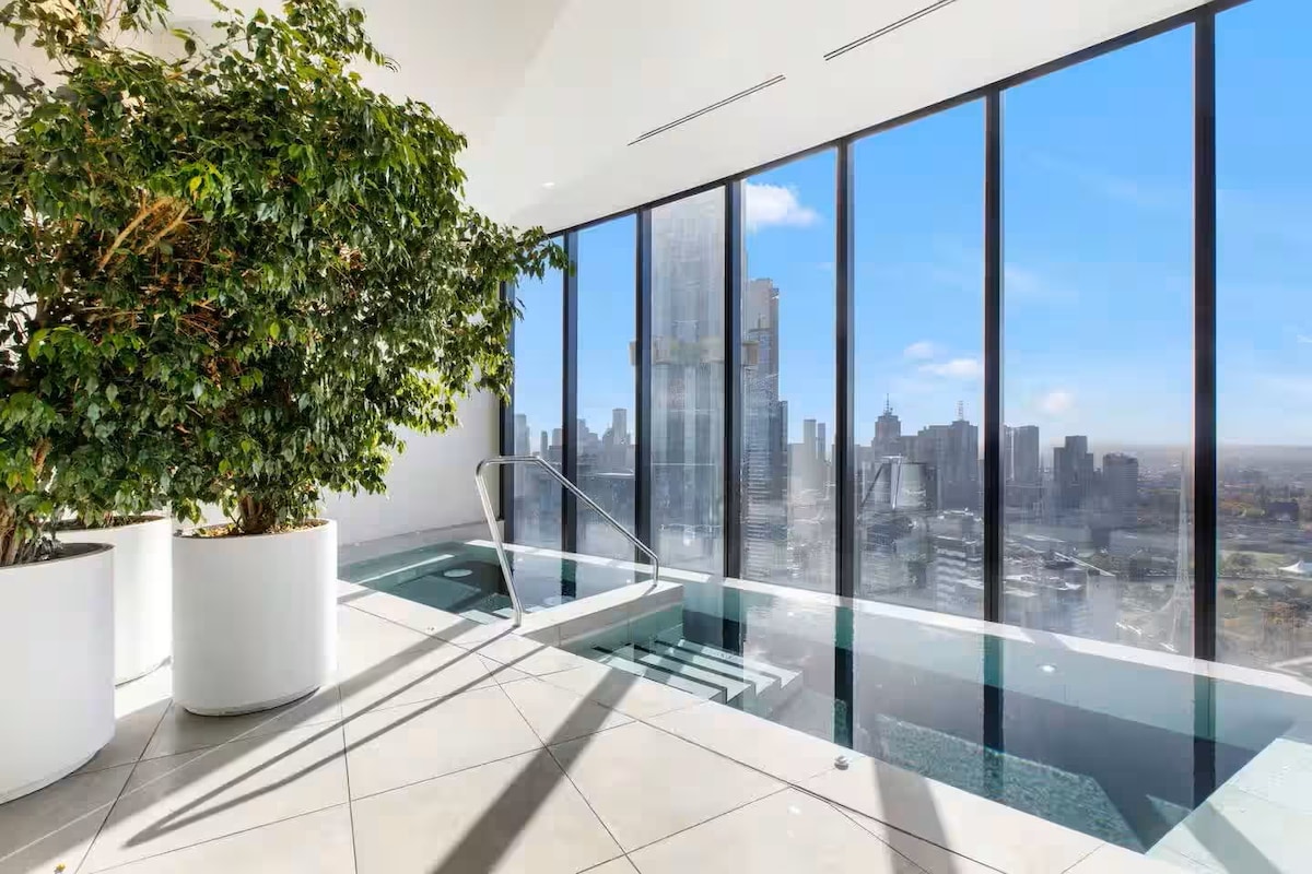 Experience the epitome of luxury living in this stunning 65m2 apartment, perfectly situated in the Paris end of Melbourne. Enjoy breathtaking city views from the comfort of your private residence, complete with a spacious lounge room featuring a leather chaise lounge and 3-seat leather couch. The modern dining table seats two, perfect for intimate gatherings. Enjoy a walk in marble shower in closure and Bathroom with LED makeup lighting. Pool is Heated all year round and the best in Melbourne.