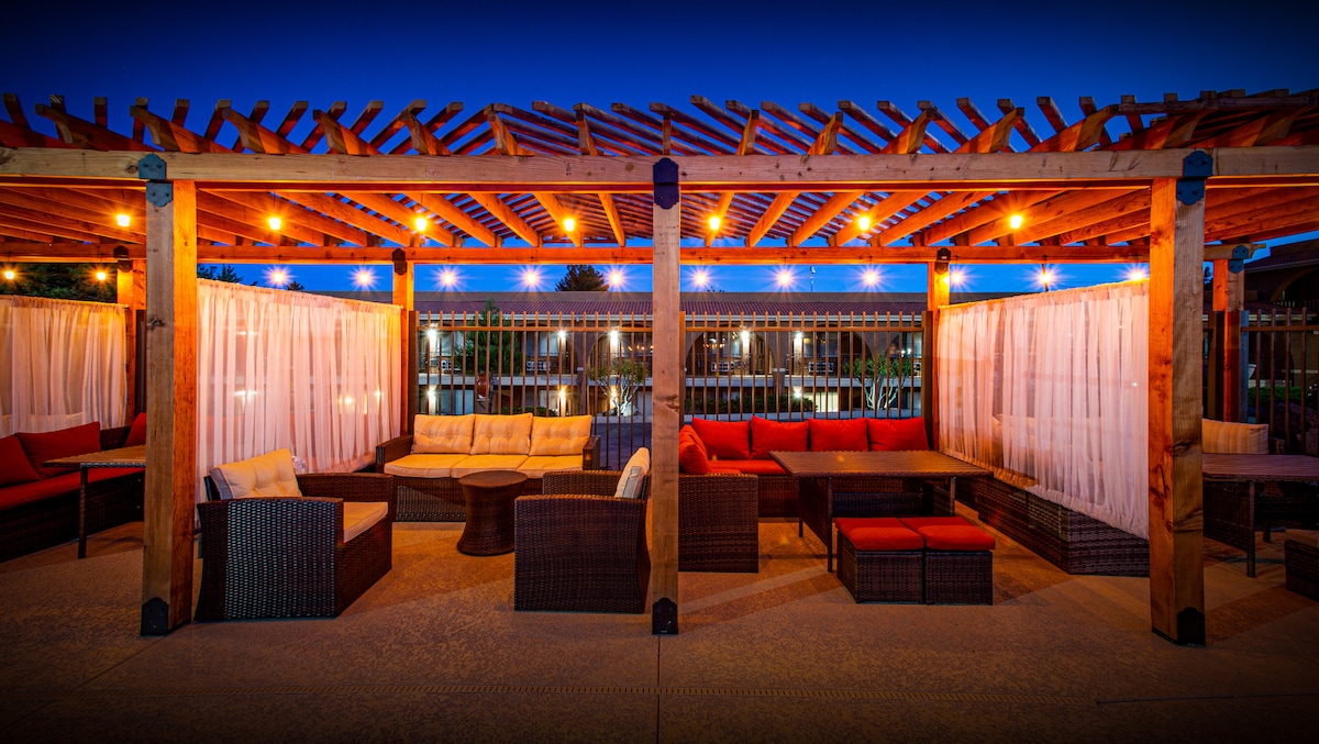 Escápate a un romántico refugio en el corazón de Sedona. Disfruta de acogedoras comodidades, como habitaciones con aire acondicionado, baños privados, wifi de cortesía, cafetera en la habitación, microondas y mininevera. Relájate en nuestros serenos jardines, relájate en los columpios al aire libre o disfruta del ambiente tranquilo junto a la fuente de agua y las fogatas. Crea el ambiente perfecto bajo las luces del bistró. Es una base ideal para tu aventura en Sedona, a pocos minutos de rutas de senderismo, con observación de estrellas, restaurantes y tiendas cerca.