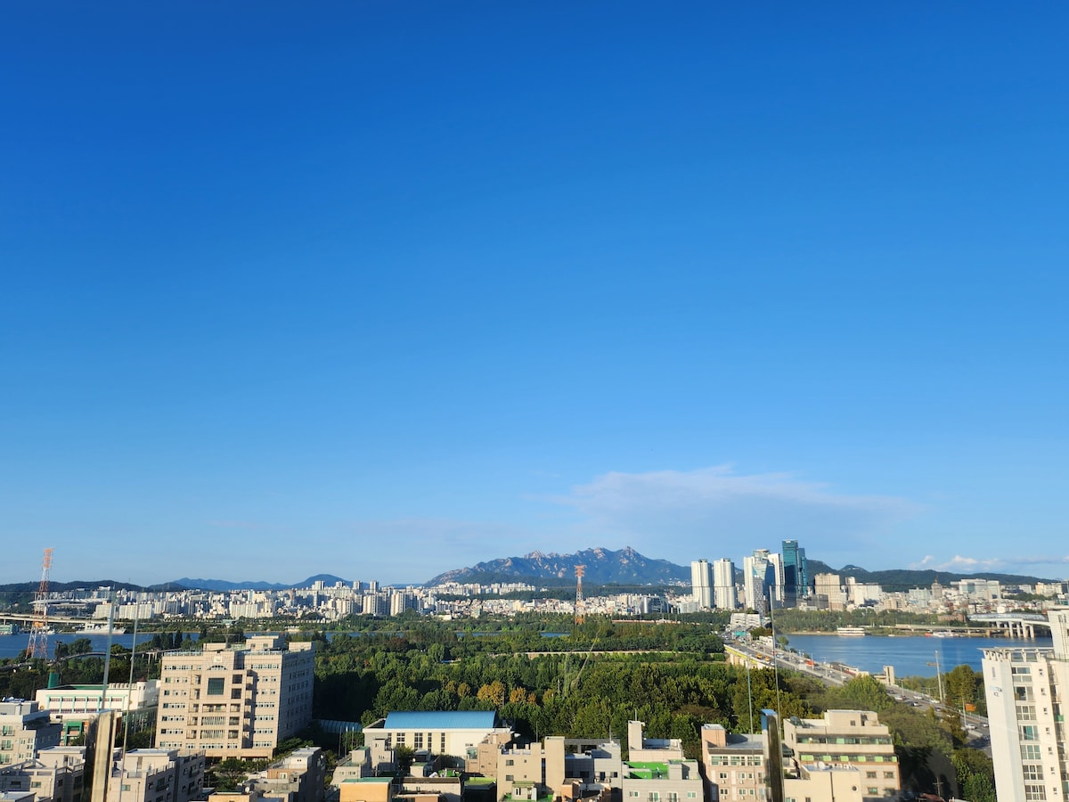 Sun N You 2. Vista panorámica del río Han a través de los cristales. Hapjeong. Hongdae. Vistas al río Han. Posibilidad de 4 personas. Estación de Seonyudo a 3 minutos. Estación de Dangsan a 7 minutos. Junto a la calle principal.