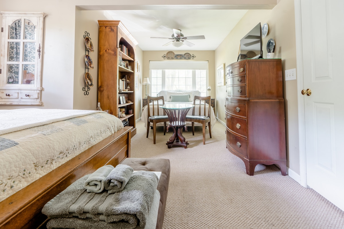 ¡Demostrando a mi familia militar el amor que tanto necesita! Esta tarifa especial con descuento se extiende a los miembros del servicio activo/jubilados y a sus familiares inmediatos. Como todos saben, si tienes un cónyuge o un ser querido en el ejército, ¡toda la familia está en el ejército! ¡Tengo una habitación privada con una cama tamaño queen y baño privado en mi casa completa con TV de pantalla plana, cable, wifi y café por la mañana para mis chicos y chicas militares! ¿Necesitas salir de la base por una o dos noches? ¡Ven a relajarte!