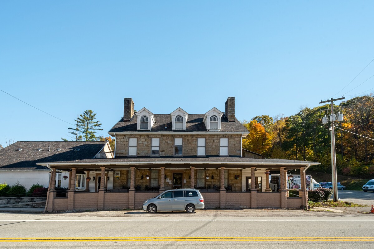 Alójate en una habitación victoriana en el Historic Stone House Inn, una posada de carretera nacional desde 1822. La calefacción central la gestiona el restaurante de abajo. Disfruta de un desayuno continental de cortesía. La suite de 3 habitaciones ubicada en el segundo piso se divide en 2 niveles con dos dormitorios tamaño queen arriba. Un salón con un sofá cama y un baño privado ocupan el primer nivel de la unidad. Es posible que los alojamientos no sean adecuados para huéspedes con movilidad reducida. El horario del restaurante varía según la posada.