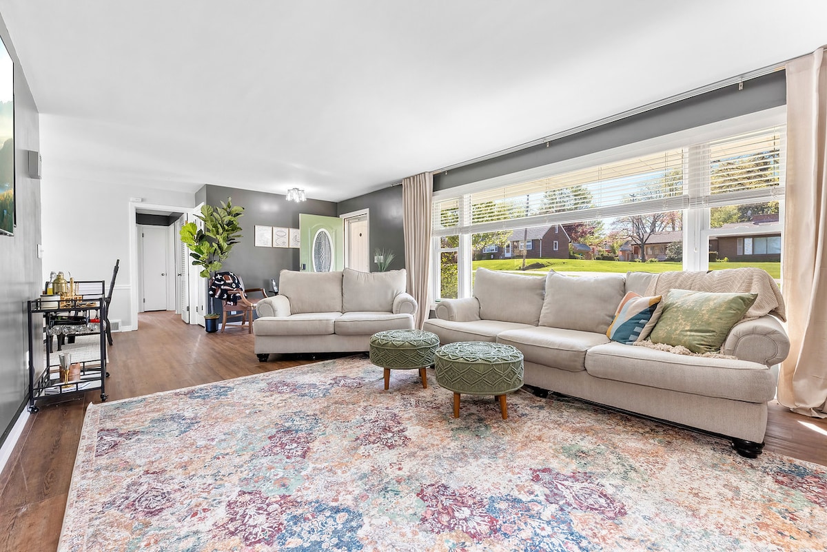 ¡Colonial de ladrillo renovado con buen gusto en el barrio histórico de Boulevard Park! Cuenta con 3 amplios dormitorios (¡dos con camas tamaño king!), 1,5 baños, amplios salones y comedores, y una sala de juegos con puerta para bebés. ¡Perfecto para cualquier grupo o familia! Hermosas actualizaciones, manteniendo el encanto histórico. ¡Aire acondicionado central! ❄️ Ubicado en el límite de Youngstown/Boardman, a pocos minutos de una gran selección de tiendas de comestibles, tiendas y restaurantes. A 8 minutos del Centro Covelli. ¡Esperamos recibirte pronto!