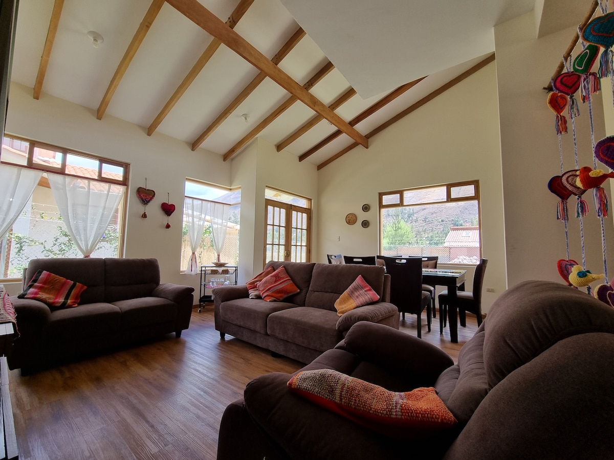 Relájate en esta Casa única y tranquila ubicada en una privilegiada zona en Yucay Urubamba, con acceso fácil y rápido y cerca a los mejores lugares del Valle Sagrado para visitar Cama King Size 3 camas 1 1/2plz Internet Columpio hamaca juegos Cocina full equipo Chimenea Estadía cómoda de 5 personas Baño con ducha caliente a gas Gran jardín Parqueo auto Se puede caminar por la zona de manera libre y confiada en familia o pareja, lugar seguro y tranquilo con gente muy amigable, bella vista!!
