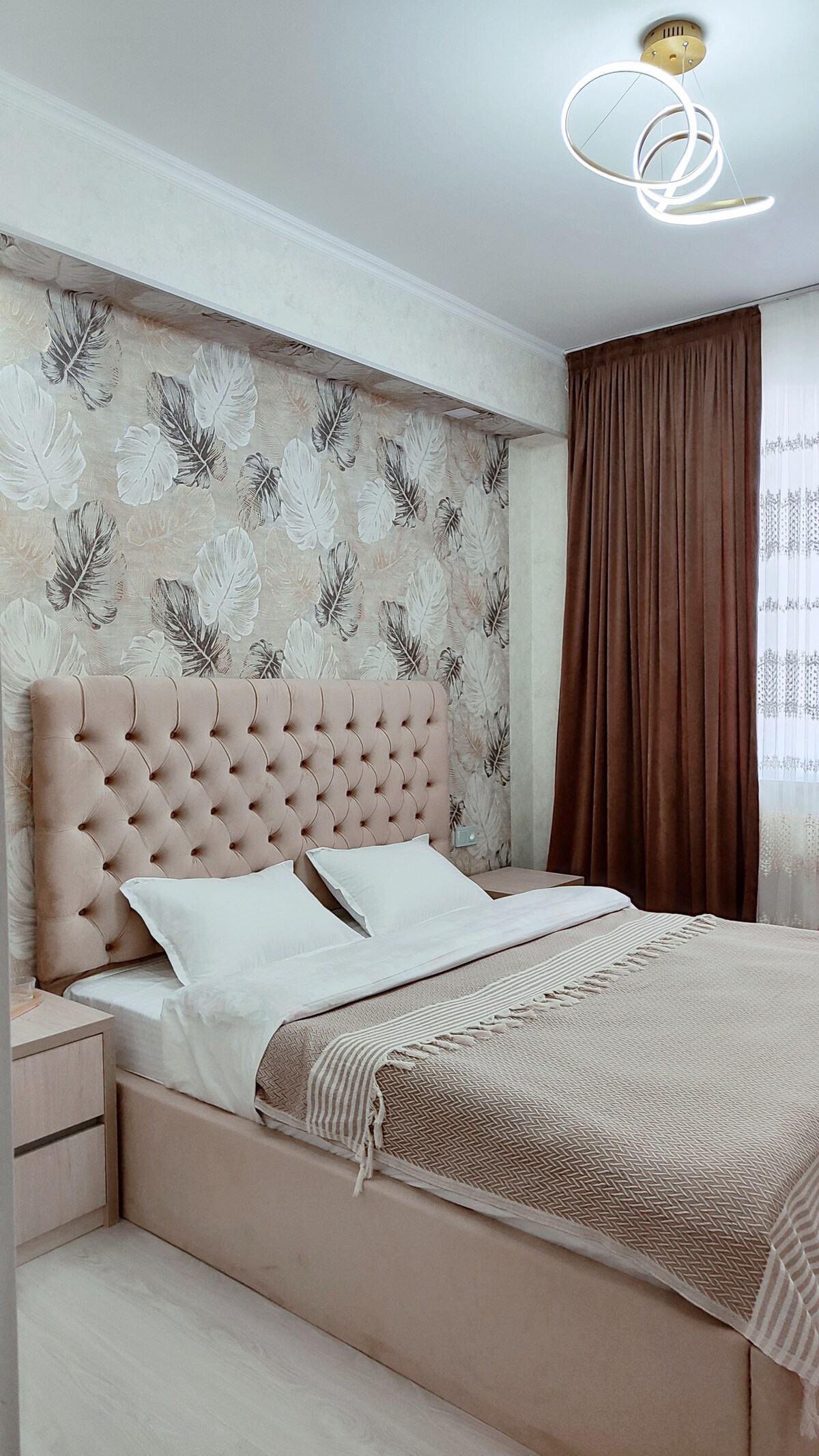 Te ofrecemos un departamento espacioso en un edificio nuevo, con renovaciones frescas y modernas y muebles nuevos. El acabado está hecho en tonos tranquilos en estilo escandinavo. Las ventanas del apartamento dan a un patio tranquilo, que te permitirá dormir una noche maravillosa antes de explorar los lugares de interés de Tashkent) ¡Desde el balcón en clima despejado hay una vista increíble de las montañas! La zona es mixta, junto a los nuevos edificios hay un Mahalla tradicional para Uzbekistán, y también se puede ver una mezquita con una cúpula esmeralda)