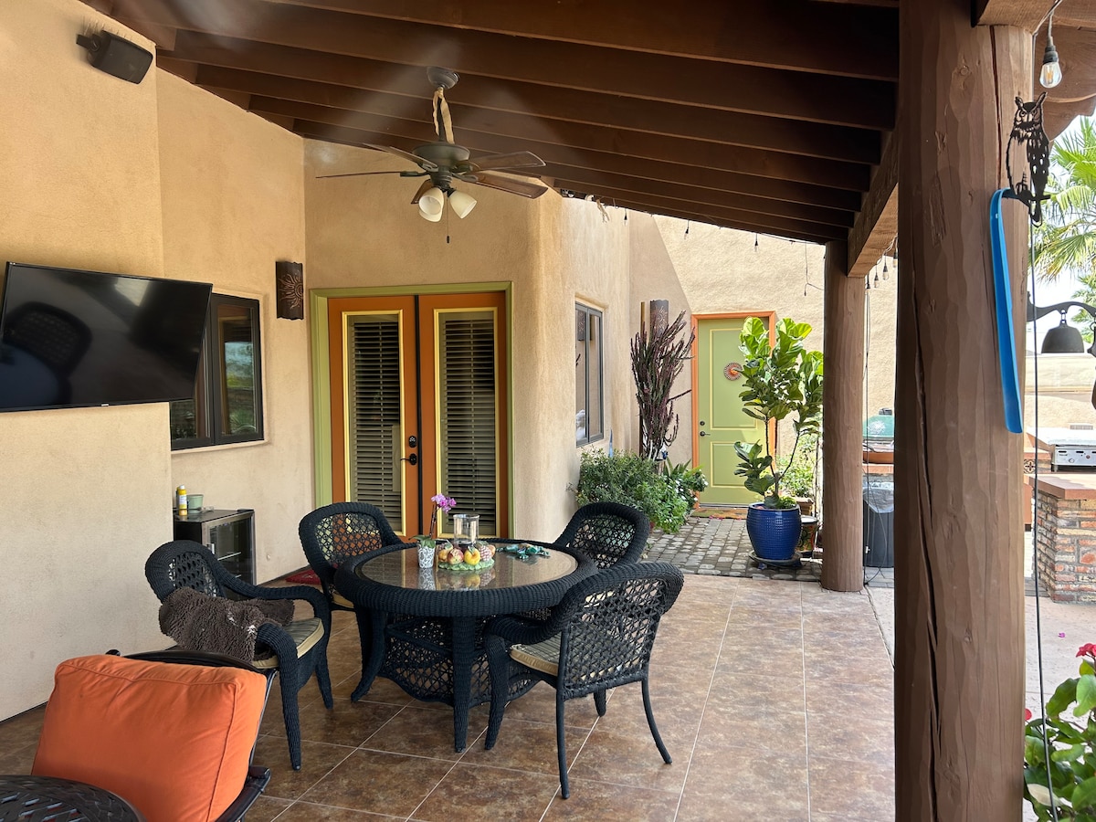 Bienvenido a nuestro encantador estudio de invitados en el seguro y tranquilo barrio de Ponderosa de Yuma, Arizona. Este estudio elegante y cómodo ofrece la combinación perfecta de relajación y comodidad. Cuenta con una cama tamaño queen, una cocina pequeña, una ducha a ras de suelo y una lavadora/secadora, junto con todas las comodidades que necesitas. Mantente conectado con wifi de alta velocidad y relájate con tus programas favoritos en la televisión. Estarás a pocos minutos de restaurantes locales, tiendas y el hospital. ¡Reserva ahora!